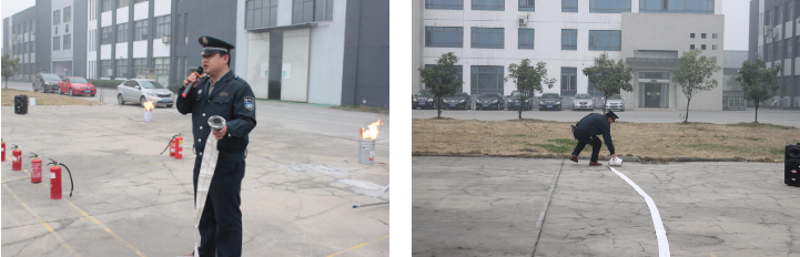 針對距離較長、突發(fā)火災(zāi)或猛火,保安部謝隊長做了詳細的介紹,并實地演練了水帶、水槍、閥門、接頭的正確使用與安裝順序,并為員工展示了鋪設(shè)水帶、安裝閥門和銜接水槍。