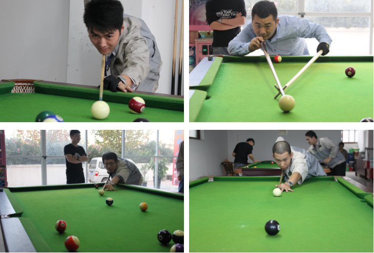 10月20日,在公司員工活動中心,舉行了合肥高科第二屆臺球挑戰(zhàn)賽。本次比賽初賽采用小組賽,三局二勝,勝出一方進入復(fù)賽,復(fù)賽和總決賽采用淘汰賽,采取抽簽決定順序和對戰(zhàn)雙方。20日下午,決定出了四強,分別是於立爭、胡佳旺、鄭慶勝、崔龍。