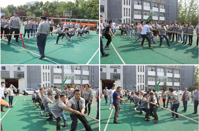 首先進(jìn)行的活動(dòng)是拔河,參與活動(dòng)的共有七支隊(duì)伍,分別是:鈑金事業(yè)部一戰(zhàn)隊(duì)、鈑金事業(yè)部二戰(zhàn)隊(duì)、彩晶事業(yè)部戰(zhàn)隊(duì)、模具事業(yè)部戰(zhàn)隊(duì)、鈑金加工部戰(zhàn)隊(duì)、惠爾科戰(zhàn)隊(duì)、職能部門戰(zhàn)隊(duì),每個(gè)戰(zhàn)隊(duì)分別由5男5女組成,共10人。